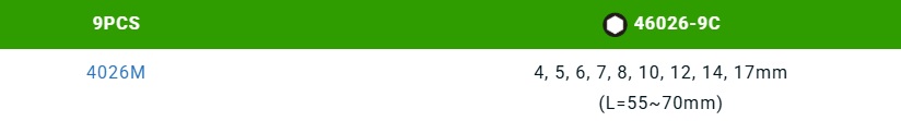 Tvirtas ir praktiškas 9 dalių šešiakampių antgalių rinkinys, pagamintas iš S2 plieno su chromo-vanadžio modifikacija, užtikrinančia puikų atsparumą dėvėjimuisi bei didelėms apkrovoms.